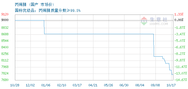 10月17日國產(chǎn)丙烯腈為7800元