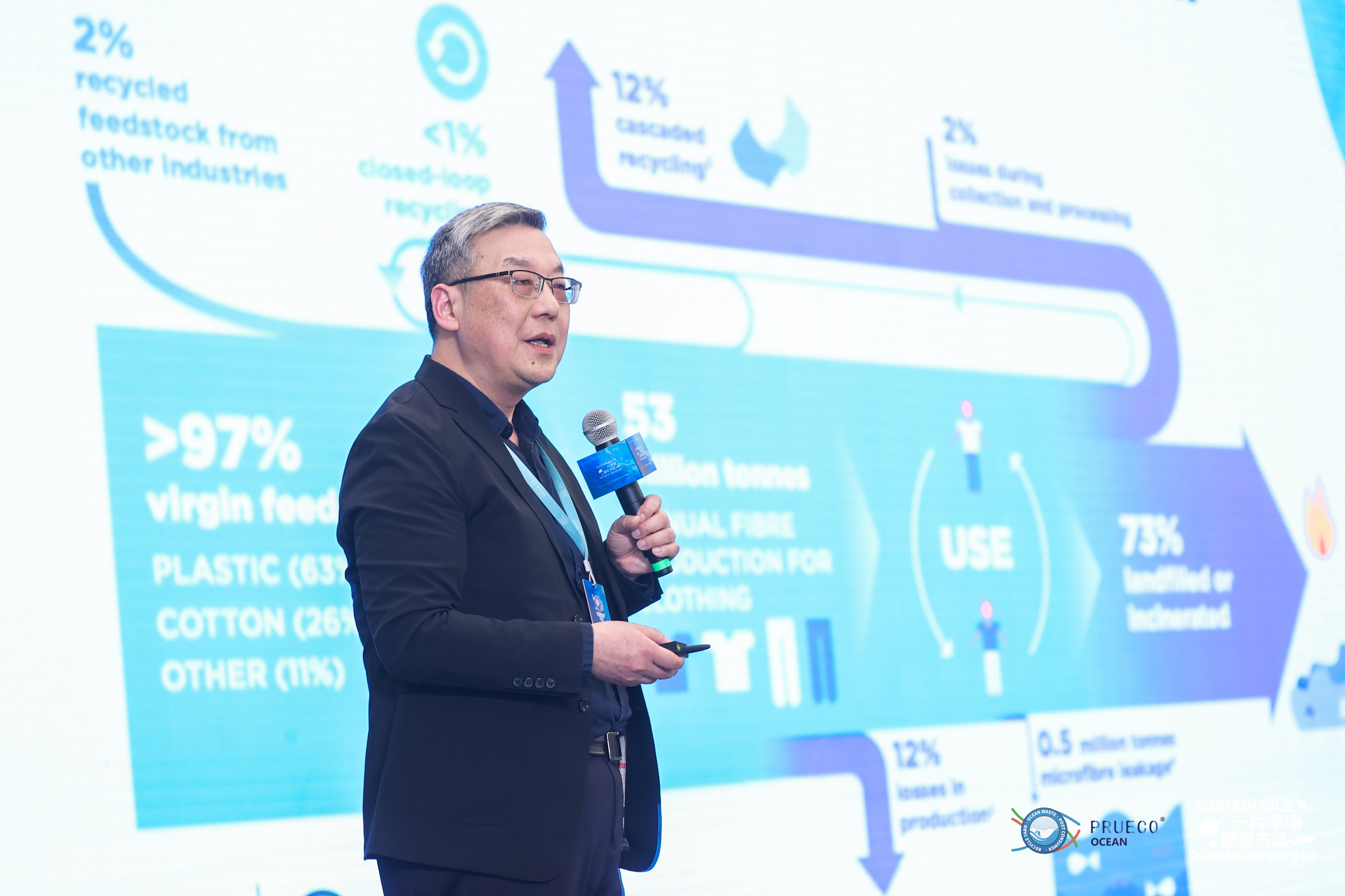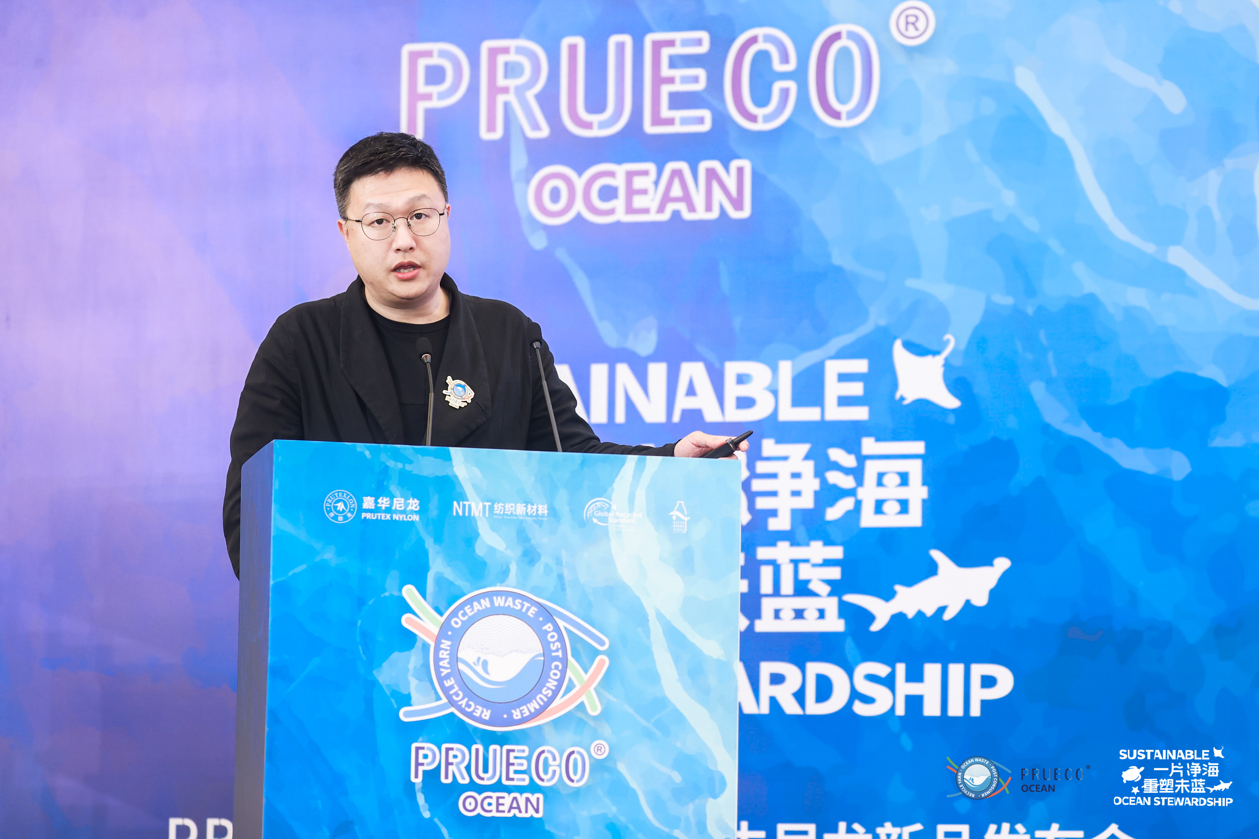 “PRUECO® 的品牌使命是降低原生石化資源使用,減少對地球生態(tài)的破壞。而海洋里有著數(shù)百萬噸的塑料垃圾,且預(yù)計到2050年塑料垃圾將超過魚類,這其中近10%來自幽靈漁具。”浙江嘉華特種尼龍有限公司運(yùn)營事業(yè)部常務(wù)副總經(jīng)理沈俊超以數(shù)據(jù)闡述了嘉華尼龍聚焦海洋幽靈漁具回收的關(guān)鍵原因,隨后,也就嘉華作為“全球唯一一家布局海洋回收網(wǎng)點的企業(yè)”的優(yōu)勢,以及PRUECO® OCEAN全球首創(chuàng)化學(xué)法海洋再生技術(shù)的各項優(yōu)勢與產(chǎn)品開發(fā)思路進(jìn)行了詳細(xì)介紹。“此外,PRUECO® OCEAN從再生切片生產(chǎn)開始加入的嘉華獨有“DNA”追蹤劑,確保了每一件產(chǎn)品全鏈路都可追溯,這讓PRUECO®吊牌可以成為您環(huán)保產(chǎn)品的專屬環(huán)保標(biāo)識,幫助您更好的講述環(huán)??沙掷m(xù)故事。”